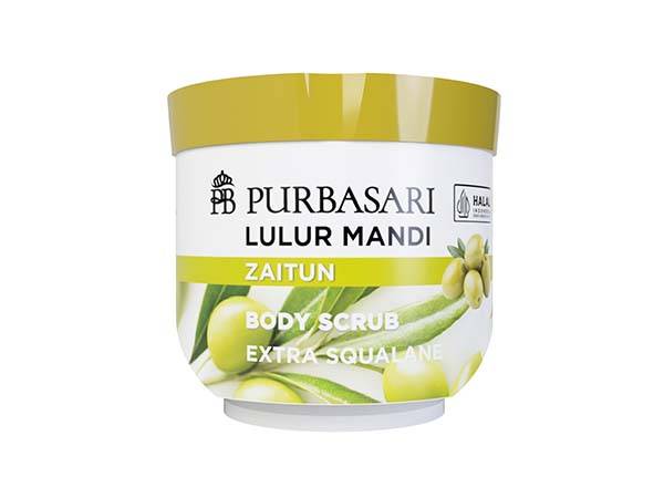 Purbasari Lulur Mandi Zaitun. Mengandung ekstrak Zaitun (olive) dan Squalane. Berfungsi untuk mengangkat kotoran dan sel kulit mati. Menjadikan kulit bersih, halus, lembut, dan lembab. Gunakan 2x seminggu dan pakai minyak zaitun setelah lulur biar semakin efektif